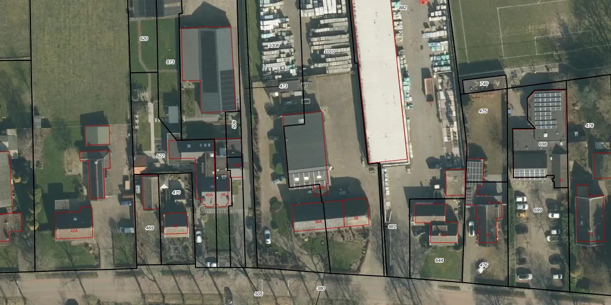 Het perceel waarop Middelstraat 38-B staat heeft een oppervlakte van 2165 m². Dit is een zeer groot perceel. De perceeloppervlakte wordt geregistreerd door het Kadaster. Gedetailleerde informatie over de maten van dit perceel kunt u vinden in het rapport Kadastrale kaart met maatvoering van Middelstraat 38-B.