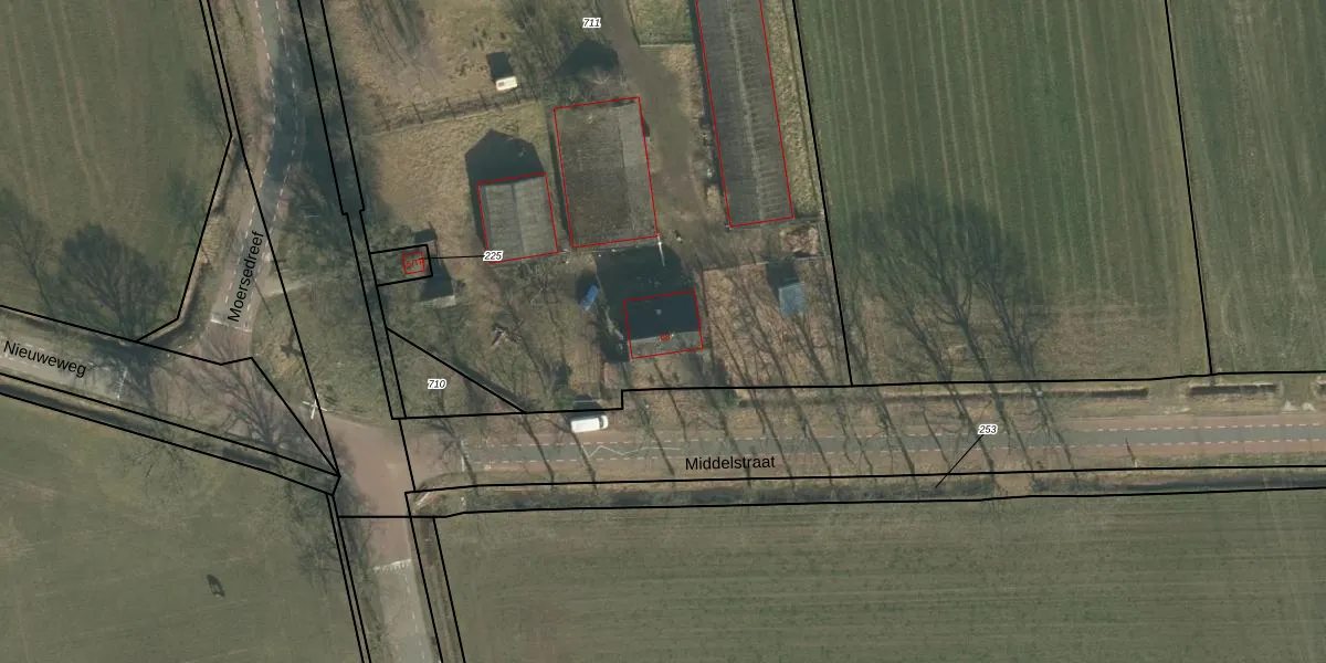 Middelstraat 68 is gelegen op kadastraal perceel LOO00Q711. Deze kadastrale aanduiding is uniek en wordt gebruikt door het Kadaster om eigendomsrechten en andere zakelijke rechten vast te leggen. Het perceel maakt onderdeel uit van de kadastrale gemeente Loon op Zand.