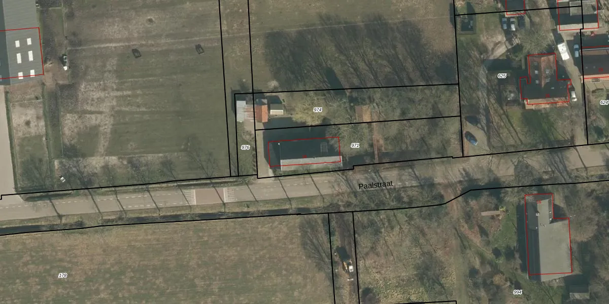 Het perceel waarop Paalstraat 19 staat heeft een oppervlakte van 978 m². Dit is een groot perceel. De perceeloppervlakte wordt geregistreerd door het Kadaster. Gedetailleerde informatie over de maten van dit perceel kunt u vinden in het rapport Kadastrale kaart met maatvoering van Paalstraat 19.