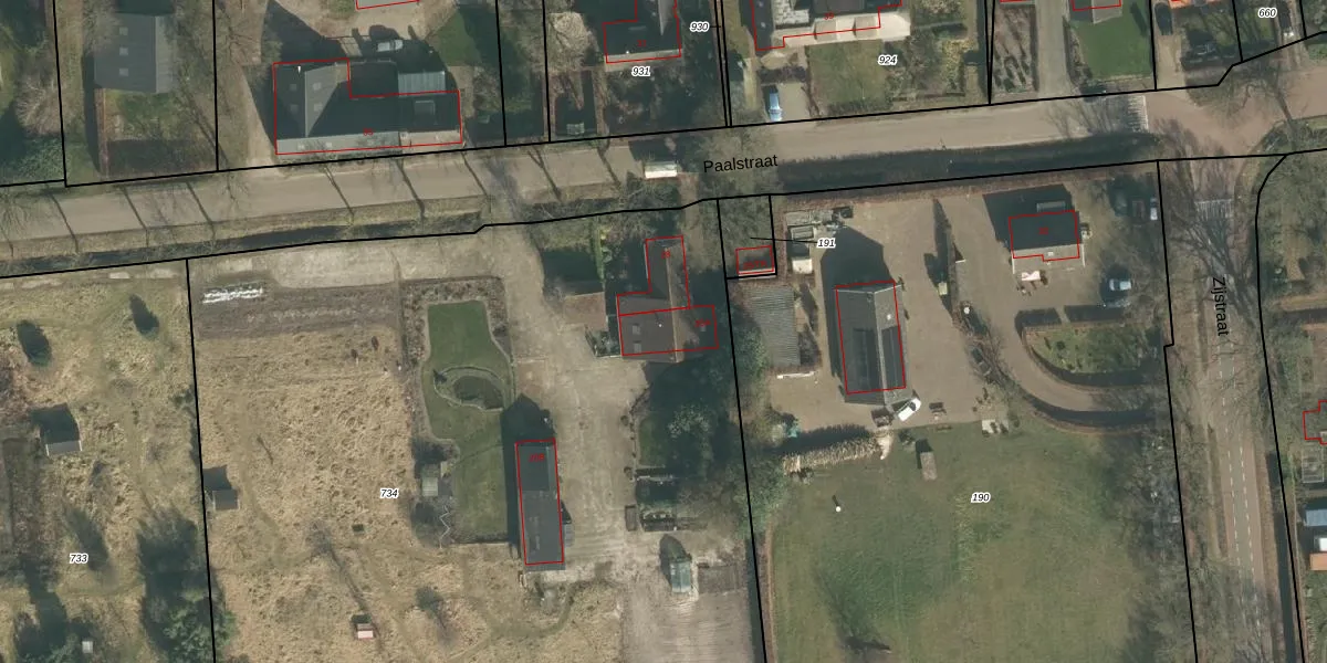 Het perceel waarop Paalstraat 28-A staat heeft een oppervlakte van 7760 m². Dit is een zeer groot perceel. De perceeloppervlakte wordt geregistreerd door het Kadaster. Gedetailleerde informatie over de maten van dit perceel kunt u vinden in het rapport Kadastrale kaart met maatvoering van Paalstraat 28-A.