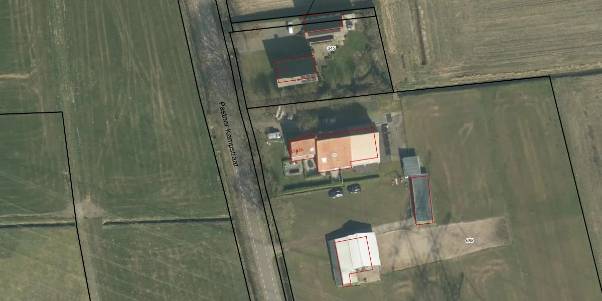 Het perceel waarop Pastoor Kampstraat 15 staat heeft een oppervlakte van 1,0 ha. Dit is een zeer groot perceel. De perceeloppervlakte wordt geregistreerd door het Kadaster. Gedetailleerde informatie over de maten van dit perceel kunt u vinden in het rapport Kadastrale kaart met maatvoering van Pastoor Kampstraat 15.
