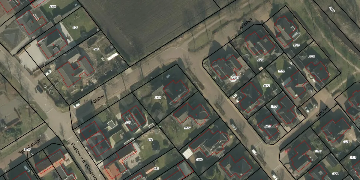 Het perceel waarop Abtshof 1 staat heeft een oppervlakte van 613 m². Dit is een groot perceel. De perceeloppervlakte wordt geregistreerd door het Kadaster. Gedetailleerde informatie over de maten van dit perceel kunt u vinden in het rapport Kadastrale kaart met maatvoering van Abtshof 1.