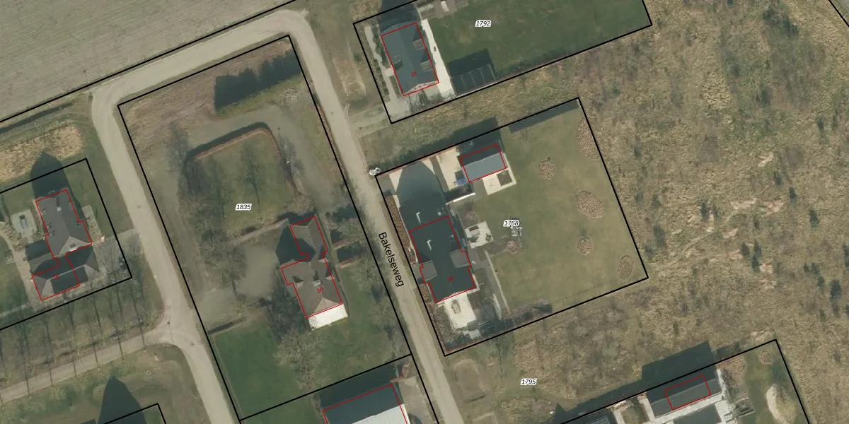 Het perceel waarop Bakelseweg 20 staat heeft een oppervlakte van 2340 m². Dit is een zeer groot perceel. De perceeloppervlakte wordt geregistreerd door het Kadaster. Gedetailleerde informatie over de maten van dit perceel kunt u vinden in het rapport Kadastrale kaart met maatvoering van Bakelseweg 20.