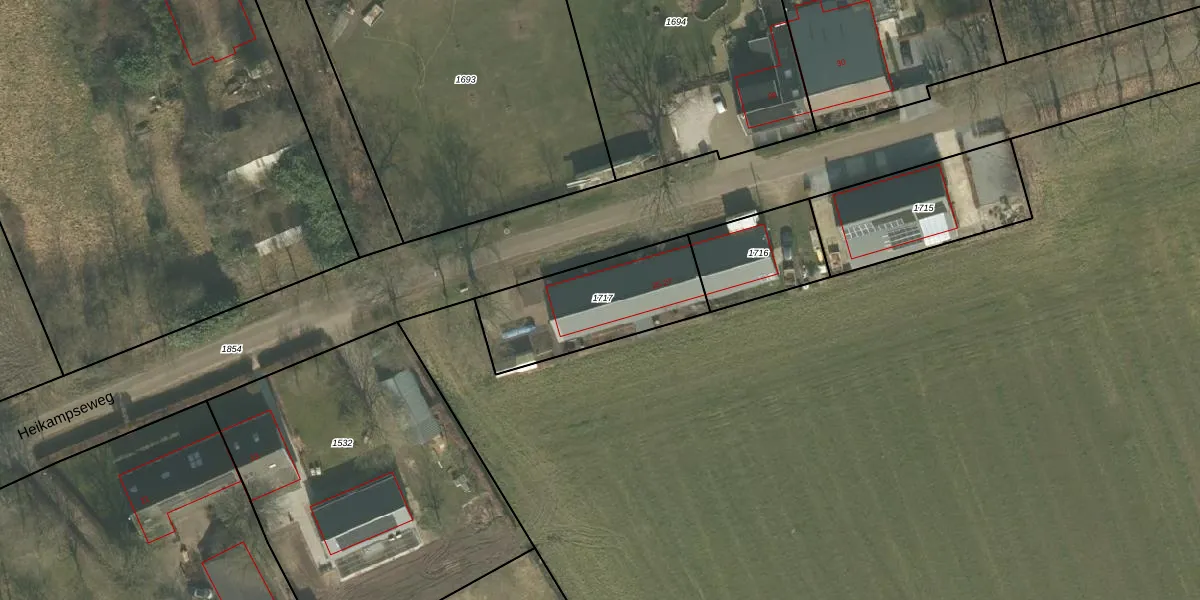 Het perceel waarop Heikampseweg 25 staat heeft een oppervlakte van 497 m². Dit is een groot perceel. De perceeloppervlakte wordt geregistreerd door het Kadaster. Gedetailleerde informatie over de maten van dit perceel kunt u vinden in het rapport Kadastrale kaart met maatvoering van Heikampseweg 25.