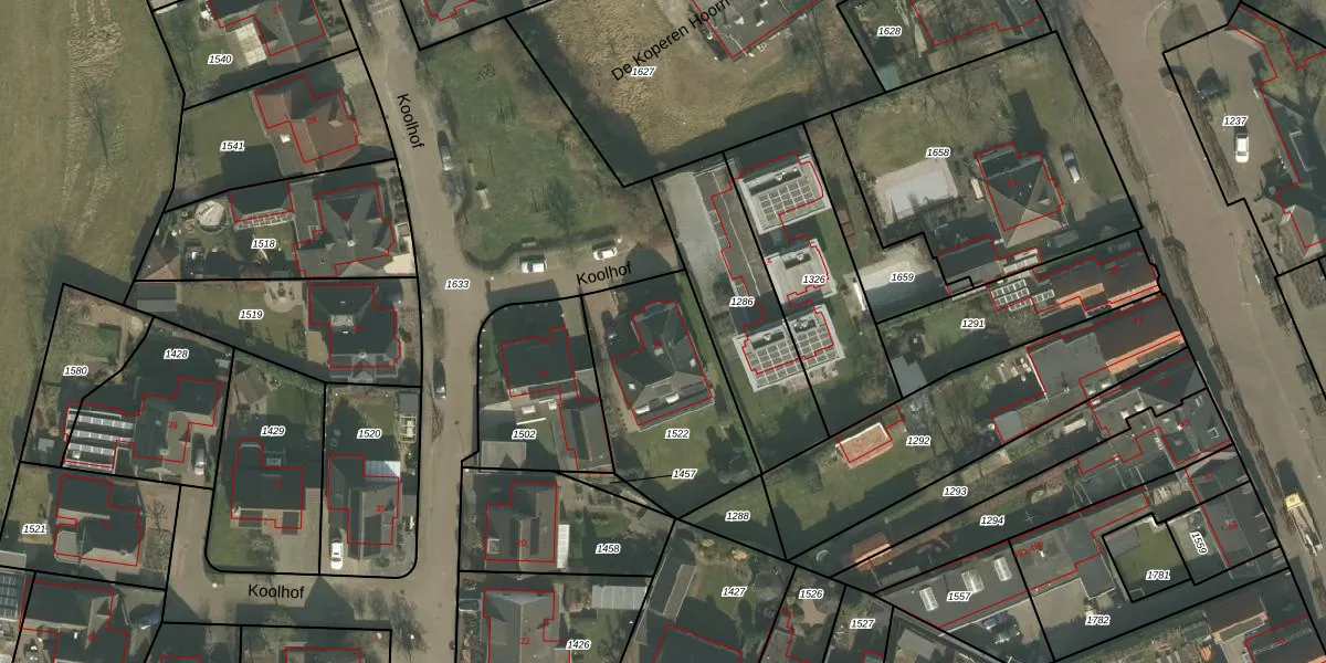 Het perceel waarop Koolhof 16 staat heeft een oppervlakte van 641 m². Dit is een groot perceel. De perceeloppervlakte wordt geregistreerd door het Kadaster. Gedetailleerde informatie over de maten van dit perceel kunt u vinden in het rapport Kadastrale kaart met maatvoering van Koolhof 16.