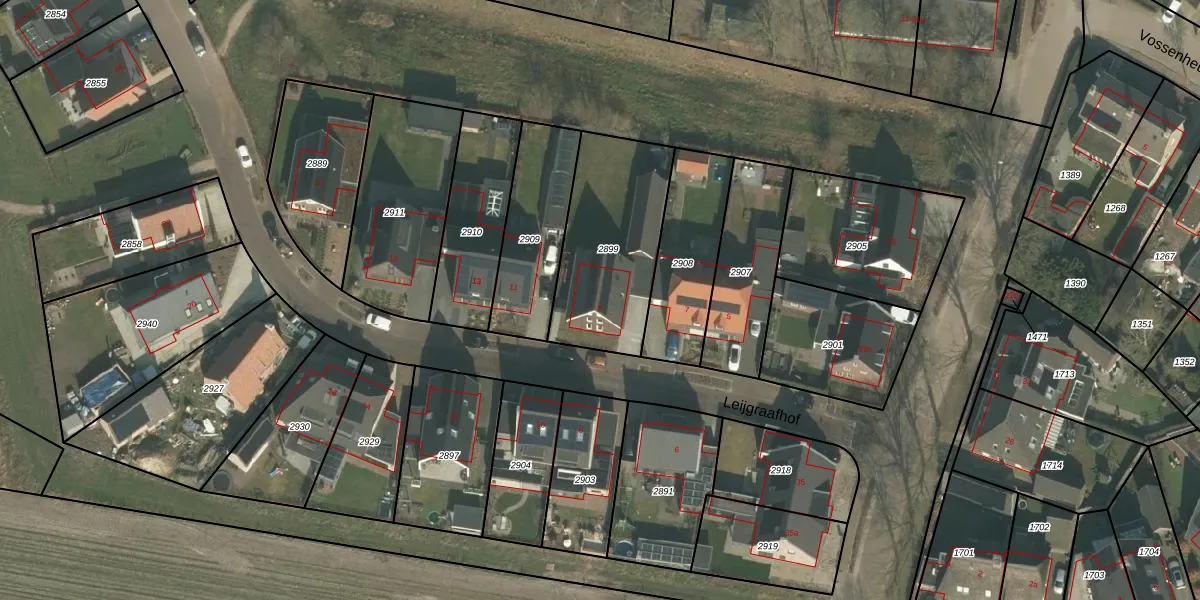 Leijgraafhof 9 is gelegen op kadastraal perceel GMT00H2899. Deze kadastrale aanduiding is uniek en wordt gebruikt door het Kadaster om eigendomsrechten en andere zakelijke rechten vast te leggen. Het perceel maakt onderdeel uit van de kadastrale gemeente Gemert.