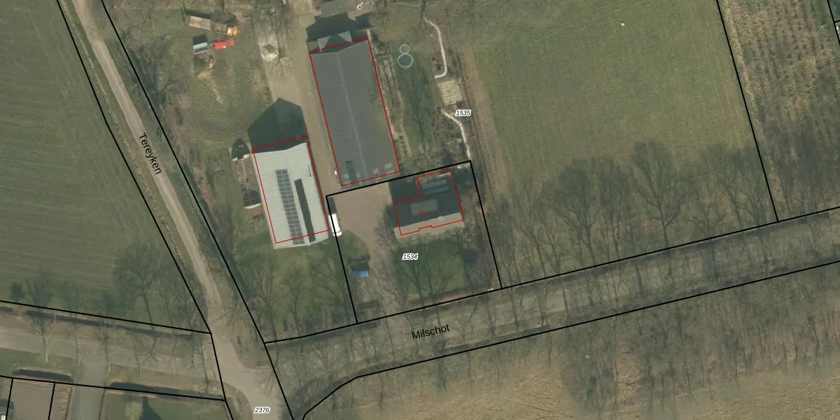 Het perceel waarop Milschot 53 staat heeft een oppervlakte van 1108 m². Dit is een zeer groot perceel. De perceeloppervlakte wordt geregistreerd door het Kadaster. Gedetailleerde informatie over de maten van dit perceel kunt u vinden in het rapport Kadastrale kaart met maatvoering van Milschot 53.