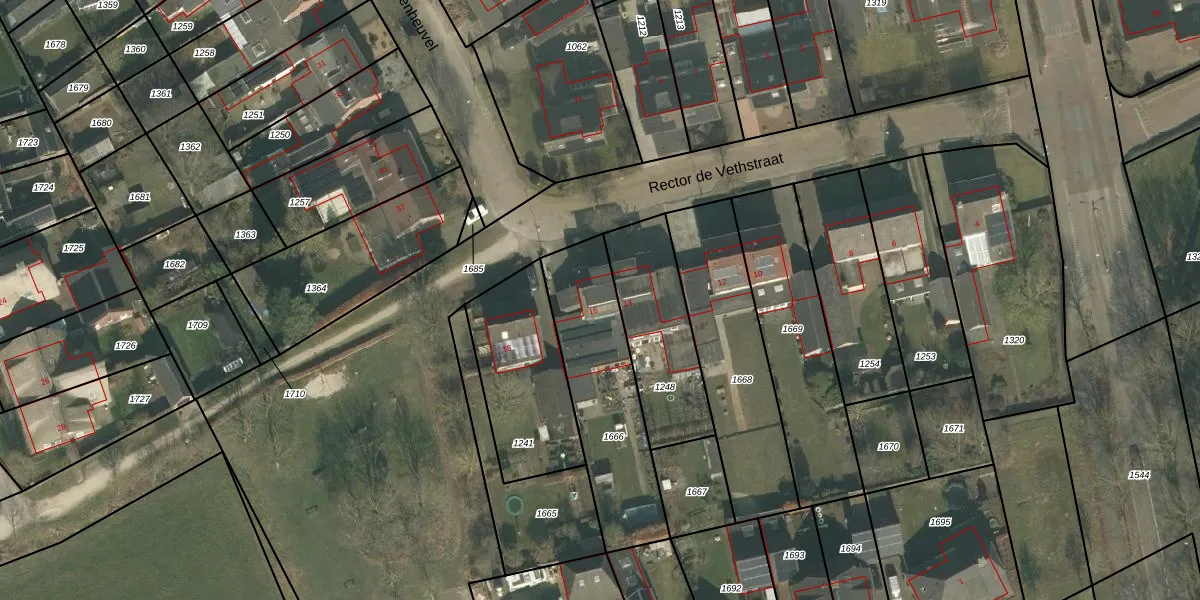 Rector de Vethstraat 16 is gelegen op kadastraal perceel GMT00F1666. Deze kadastrale aanduiding is uniek en wordt gebruikt door het Kadaster om eigendomsrechten en andere zakelijke rechten vast te leggen. Het perceel maakt onderdeel uit van de kadastrale gemeente Gemert.