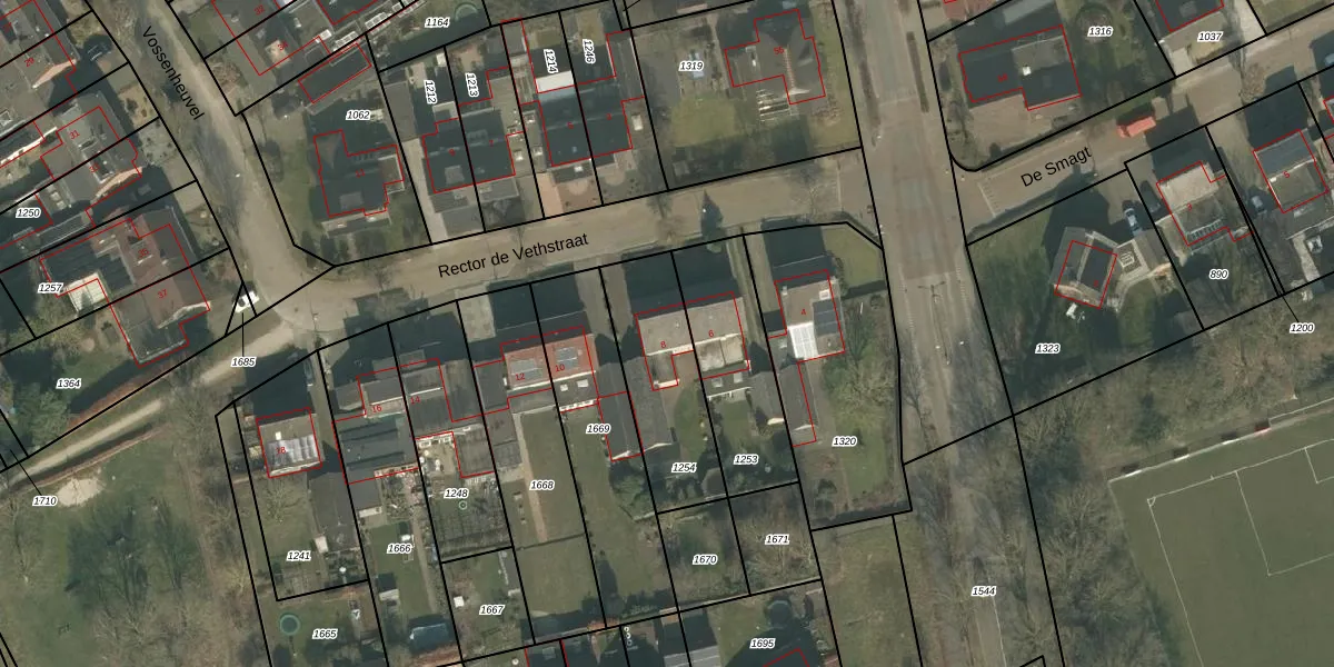 Gebruik de zoekbalk of klik op een perceel voor informatie over de adressen binnen dit perceel.