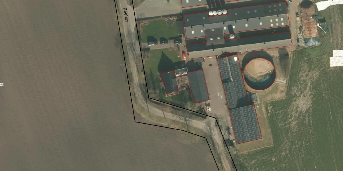 Het perceel waarop Reebos 6 staat heeft een oppervlakte van 12,1 ha. Dit is een zeer groot perceel. De perceeloppervlakte wordt geregistreerd door het Kadaster. Gedetailleerde informatie over de maten van dit perceel kunt u vinden in het rapport Kadastrale kaart met maatvoering van Reebos 6.