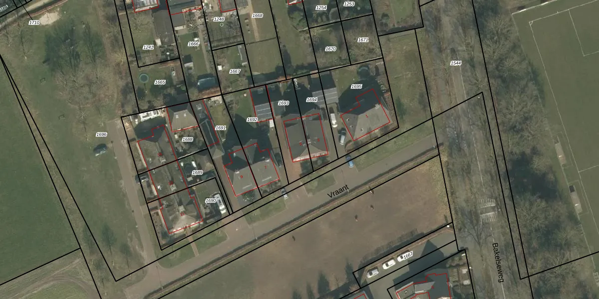 Het perceel waarop Vraant 5 staat heeft een oppervlakte van 300 m². Dit is een groot perceel. De perceeloppervlakte wordt geregistreerd door het Kadaster. Gedetailleerde informatie over de maten van dit perceel kunt u vinden in het rapport Kadastrale kaart met maatvoering van Vraant 5.