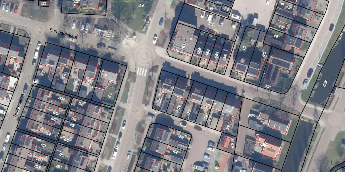 Het perceel waarop Bernhardstraat 11 staat heeft een oppervlakte van 222 m². Dit is een middelgroot perceel. De perceeloppervlakte wordt geregistreerd door het Kadaster. Gedetailleerde informatie over de maten van dit perceel kunt u vinden in het rapport Kadastrale kaart met maatvoering van Bernhardstraat 11.