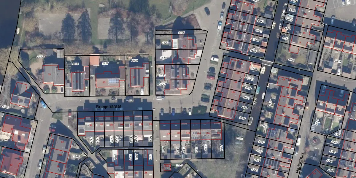Gebruik de zoekbalk of klik op een perceel voor informatie over de adressen binnen dit perceel.