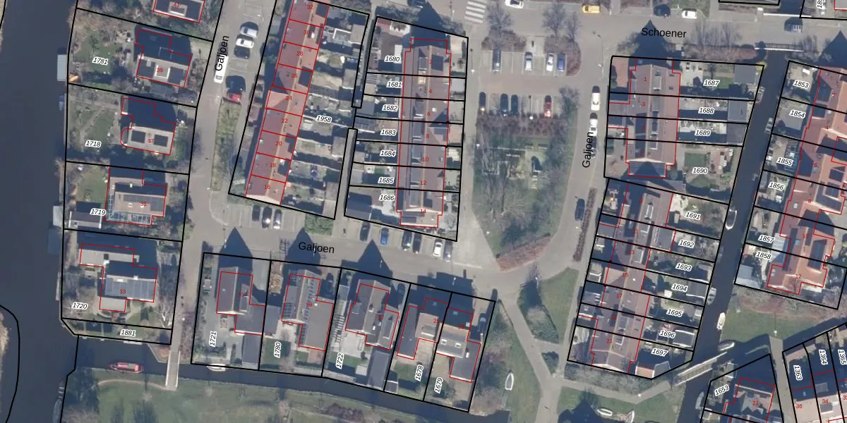 Het perceel waarop Galjoen 14 staat heeft een oppervlakte van 253 m². Dit is een middelgroot perceel. De perceeloppervlakte wordt geregistreerd door het Kadaster. Gedetailleerde informatie over de maten van dit perceel kunt u vinden in het rapport Kadastrale kaart met maatvoering van Galjoen 14.