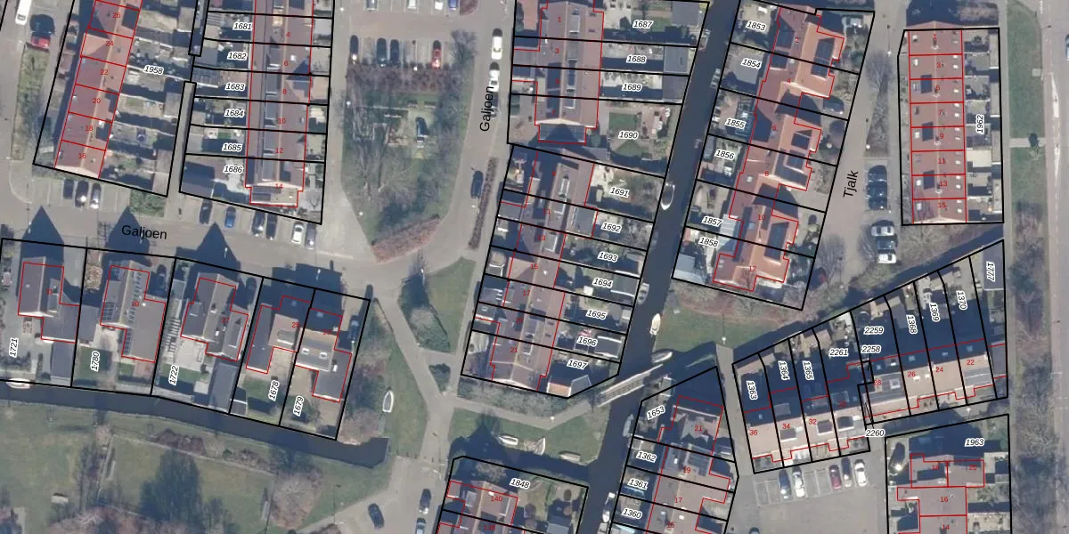 Gebruik de zoekbalk of klik op een perceel voor informatie over de adressen binnen dit perceel.