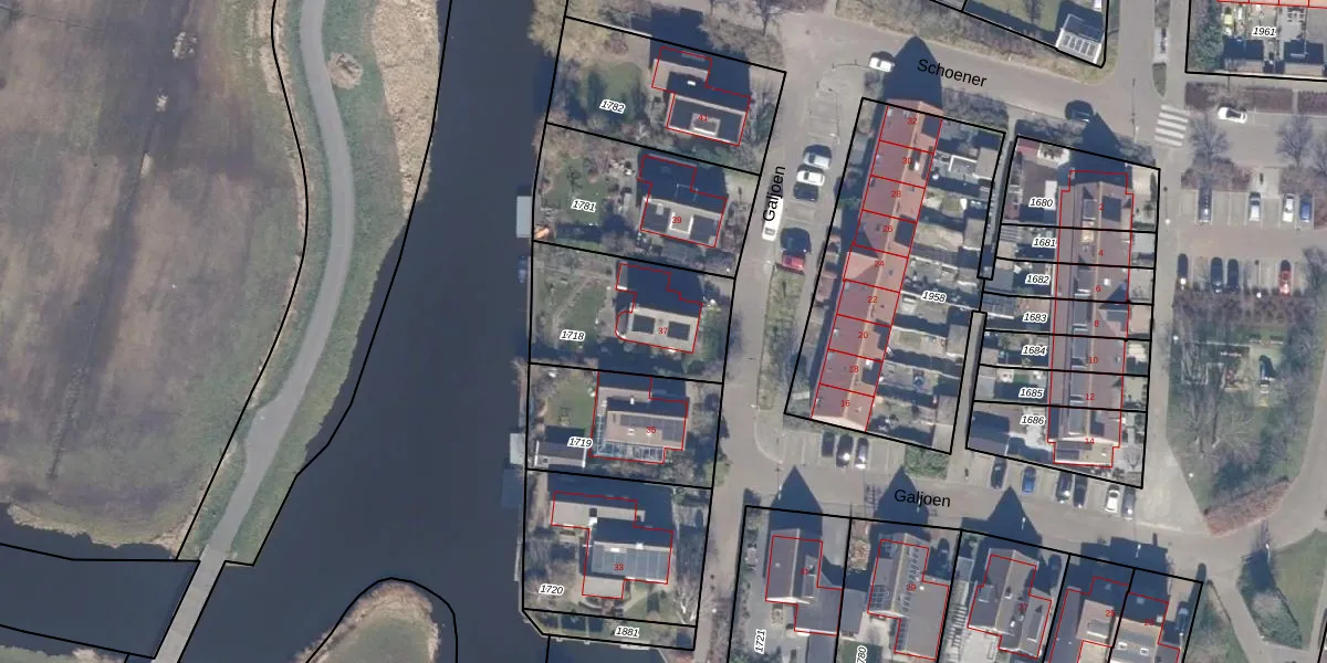 Het perceel waarop Galjoen 37 staat heeft een oppervlakte van 515 m². Dit is een groot perceel. De perceeloppervlakte wordt geregistreerd door het Kadaster. Gedetailleerde informatie over de maten van dit perceel kunt u vinden in het rapport Kadastrale kaart met maatvoering van Galjoen 37.