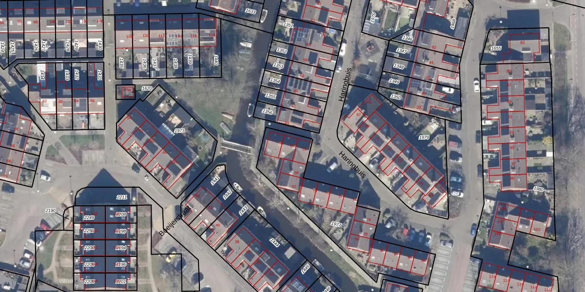 Het perceel waarop Haringbuis 53 staat heeft een oppervlakte van 1030 m². Dit is een zeer groot perceel. De perceeloppervlakte wordt geregistreerd door het Kadaster. Gedetailleerde informatie over de maten van dit perceel kunt u vinden in het rapport Kadastrale kaart met maatvoering van Haringbuis 53.