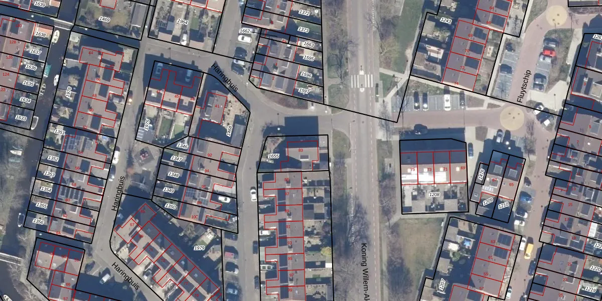 Het perceel waarop Haringbuis 83 staat heeft een oppervlakte van 262 m². Dit is een middelgroot perceel. De perceeloppervlakte wordt geregistreerd door het Kadaster. Gedetailleerde informatie over de maten van dit perceel kunt u vinden in het rapport Kadastrale kaart met maatvoering van Haringbuis 83.
