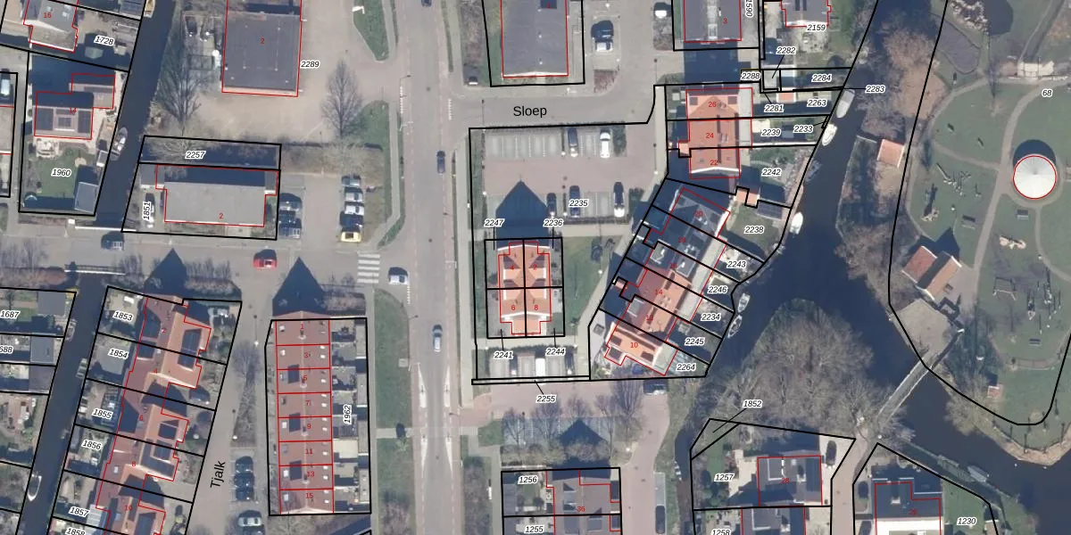 Het perceel waarop Sloep 2 staat heeft een oppervlakte van 66 m². Dit is een klein perceel. De perceeloppervlakte wordt geregistreerd door het Kadaster. Gedetailleerde informatie over de maten van dit perceel kunt u vinden in het rapport Kadastrale kaart met maatvoering van Sloep 2.