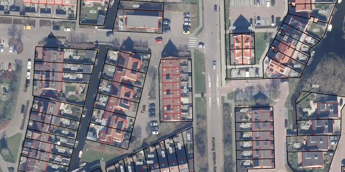 Het perceel waarop Tjalk 7 staat heeft een oppervlakte van 688 m². Dit is een groot perceel. De perceeloppervlakte wordt geregistreerd door het Kadaster. Gedetailleerde informatie over de maten van dit perceel kunt u vinden in het rapport Kadastrale kaart met maatvoering van Tjalk 7.