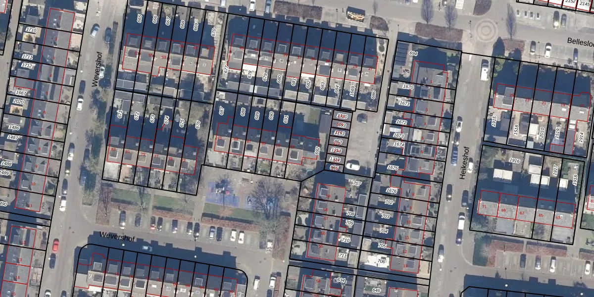 Gebruik de zoekbalk of klik op een perceel voor informatie over de adressen binnen dit perceel.