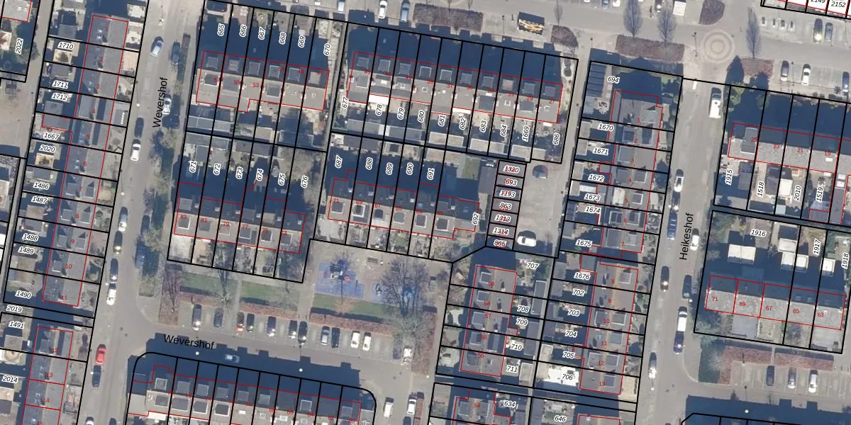 Het perceel waarop Wevershof 63 staat heeft een oppervlakte van 128 m². Dit is een middelgroot perceel. De perceeloppervlakte wordt geregistreerd door het Kadaster. Gedetailleerde informatie over de maten van dit perceel kunt u vinden in het rapport Kadastrale kaart met maatvoering van Wevershof 63.