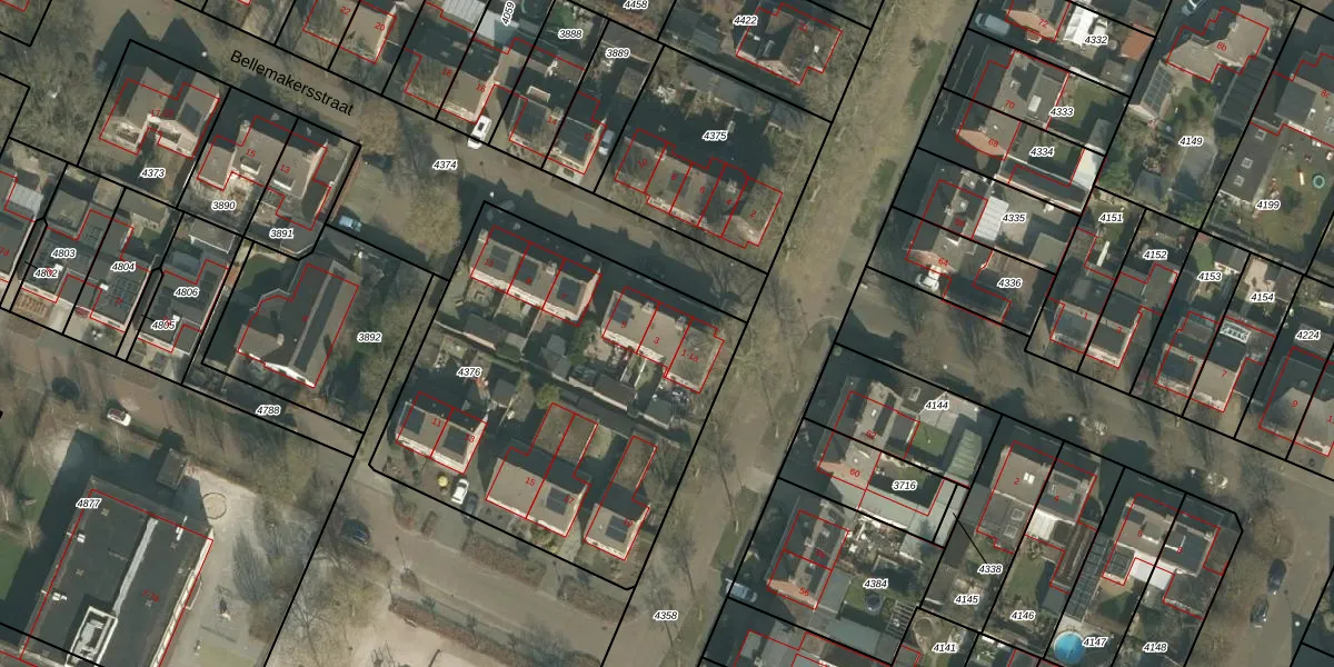 Bellemakersstraat 3 is gelegen op kadastraal perceel BKL02A4376. Deze kadastrale aanduiding is uniek en wordt gebruikt door het Kadaster om eigendomsrechten en andere zakelijke rechten vast te leggen. Het perceel maakt onderdeel uit van de kadastrale gemeente Bakel en Milheeze.