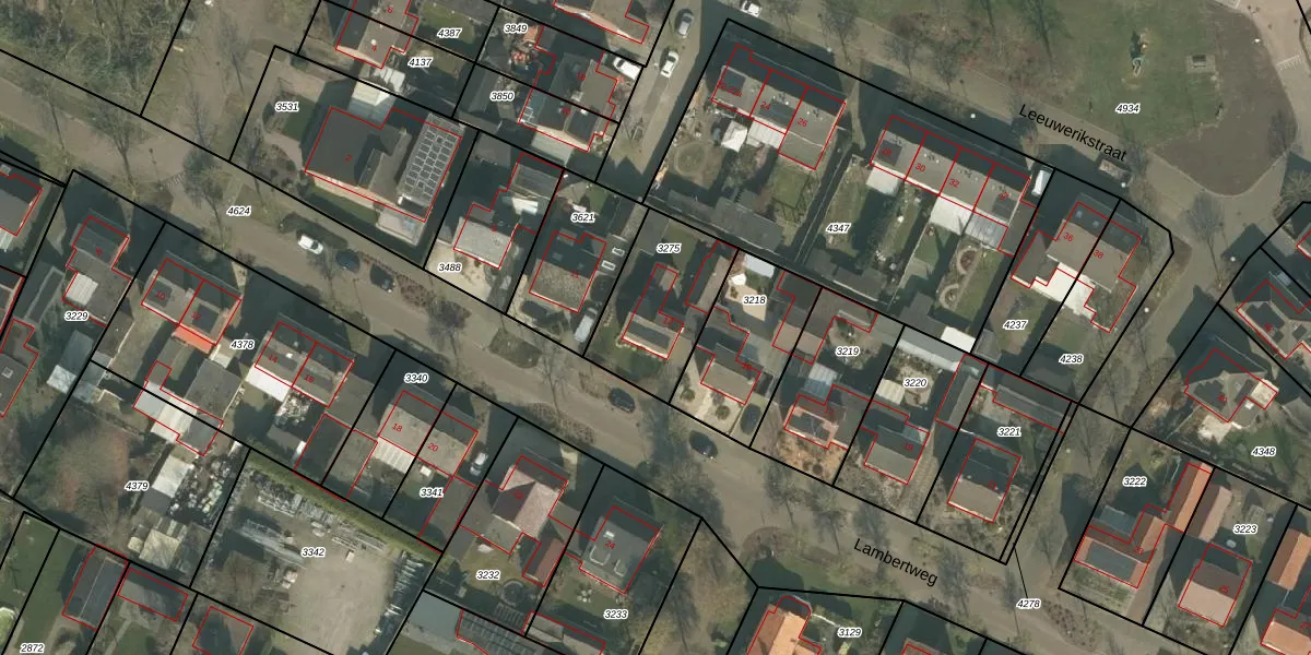 Het perceel waarop Lambertweg 13 staat heeft een oppervlakte van 382 m². Dit is een groot perceel. De perceeloppervlakte wordt geregistreerd door het Kadaster. Gedetailleerde informatie over de maten van dit perceel kunt u vinden in het rapport Kadastrale kaart met maatvoering van Lambertweg 13.