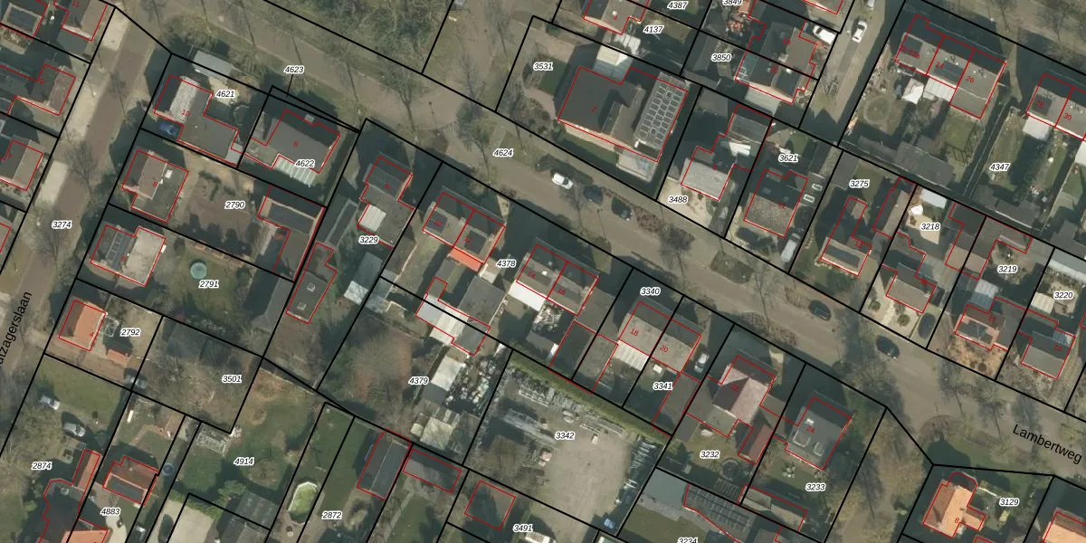 Het perceel waarop Lambertweg 14 staat heeft een oppervlakte van 963 m². Dit is een groot perceel. De perceeloppervlakte wordt geregistreerd door het Kadaster. Gedetailleerde informatie over de maten van dit perceel kunt u vinden in het rapport Kadastrale kaart met maatvoering van Lambertweg 14.