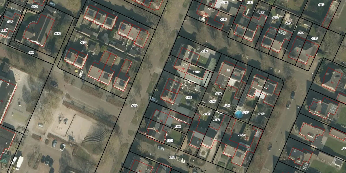 Het adres ligt op het perceel BKL02-A-4384, dat zich in de kadastrale gemeente Bakel en Milheeze bevindt. Het perceel is 523 m² groot. Dat is kleiner dan de gemiddelde perceeloppervlakte in Bakel en Milheeze, dat op 9021,81 m² ligt. De grootste perceeloppervlakte in de kadastrale gemeente is 1,18 km². De kleinste oppervlakte bedraagt 0 m². Op het perceel liggen in totaal 2 adressen. In de Basisregistratie Kadaster (BRK) werden de grenzen van het perceel geregistreerd op 30-03-2005.