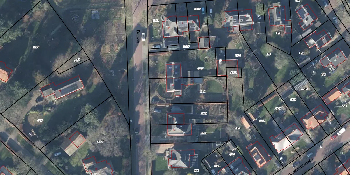 Het perceel waarop Dalweg 10 staat heeft een oppervlakte van 684 m². Dit is een groot perceel. De perceeloppervlakte wordt geregistreerd door het Kadaster. Gedetailleerde informatie over de maten van dit perceel kunt u vinden in het rapport Kadastrale kaart met maatvoering van Dalweg 10.