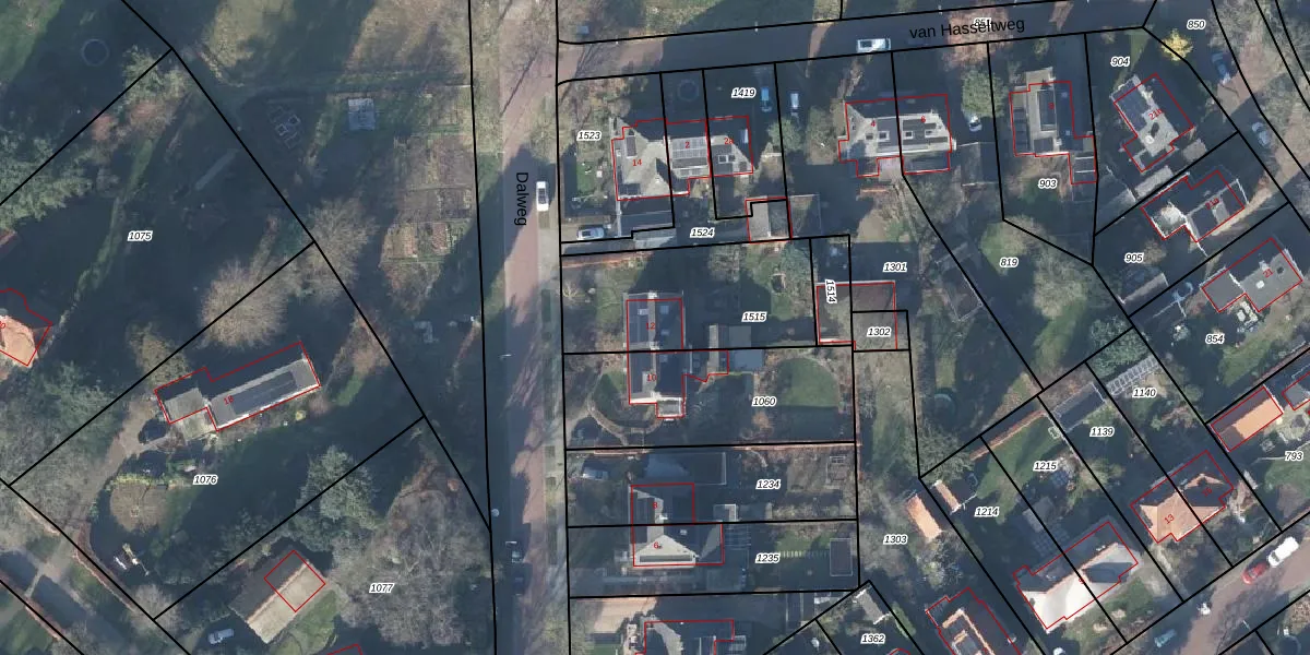 Het perceel waarop Dalweg 12 staat heeft een oppervlakte van 594 m². Dit is een groot perceel. De perceeloppervlakte wordt geregistreerd door het Kadaster. Gedetailleerde informatie over de maten van dit perceel kunt u vinden in het rapport Kadastrale kaart met maatvoering van Dalweg 12.
