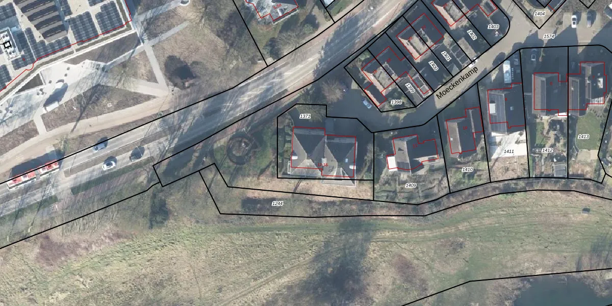 Het perceel waarop Moeckenkamp 13 staat heeft een oppervlakte van 703 m². Dit is een groot perceel. De perceeloppervlakte wordt geregistreerd door het Kadaster. Gedetailleerde informatie over de maten van dit perceel kunt u vinden in het rapport Kadastrale kaart met maatvoering van Moeckenkamp 13.