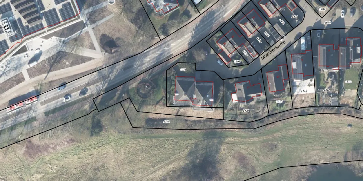 Het perceel waarop Moeckenkamp 15 staat heeft een oppervlakte van 703 m². Dit is een groot perceel. De perceeloppervlakte wordt geregistreerd door het Kadaster. Gedetailleerde informatie over de maten van dit perceel kunt u vinden in het rapport Kadastrale kaart met maatvoering van Moeckenkamp 15.