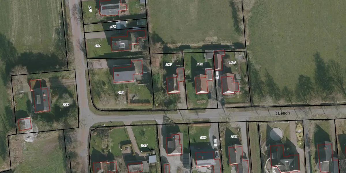 Het perceel waarop It Leech 1 staat heeft een oppervlakte van 620 m². Dit is een groot perceel. De perceeloppervlakte wordt geregistreerd door het Kadaster. Gedetailleerde informatie over de maten van dit perceel kunt u vinden in het rapport Kadastrale kaart met maatvoering van It Leech 1.