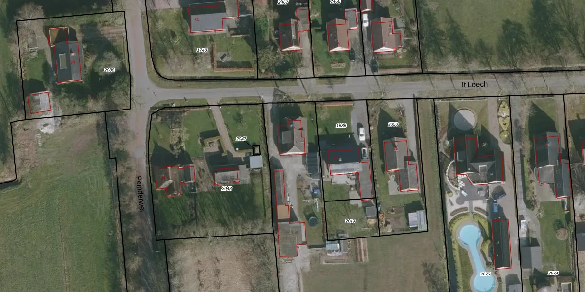 Het perceel waarop It Leech 4 staat heeft een oppervlakte van 5364 m². Dit is een zeer groot perceel. De perceeloppervlakte wordt geregistreerd door het Kadaster. Gedetailleerde informatie over de maten van dit perceel kunt u vinden in het rapport Kadastrale kaart met maatvoering van It Leech 4.