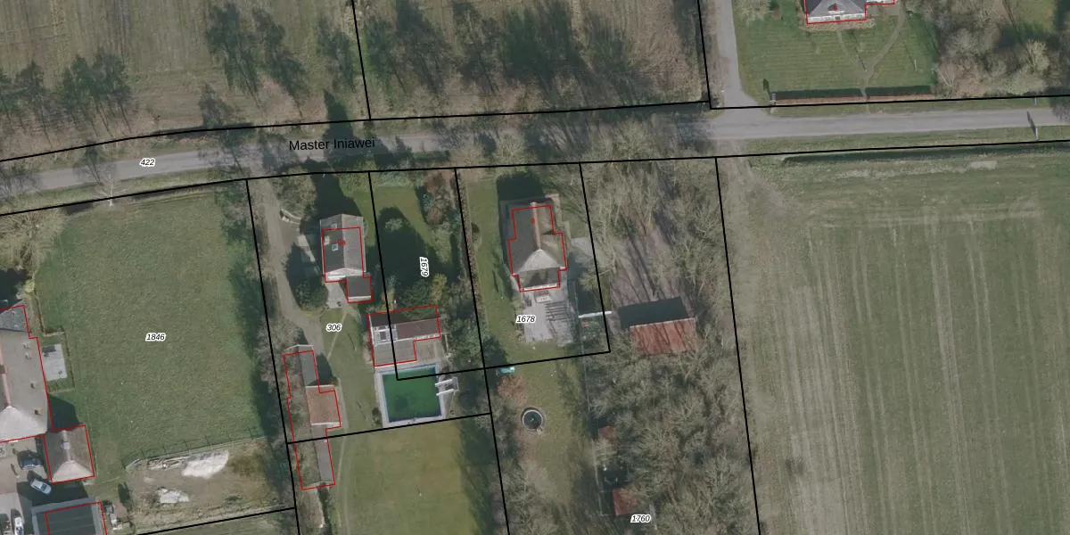 Master Iniawei 9 is gelegen op kadastraal perceel ODG00F1678. Deze kadastrale aanduiding is uniek en wordt gebruikt door het Kadaster om eigendomsrechten en andere zakelijke rechten vast te leggen. Het perceel maakt onderdeel uit van de kadastrale gemeente Oudega.