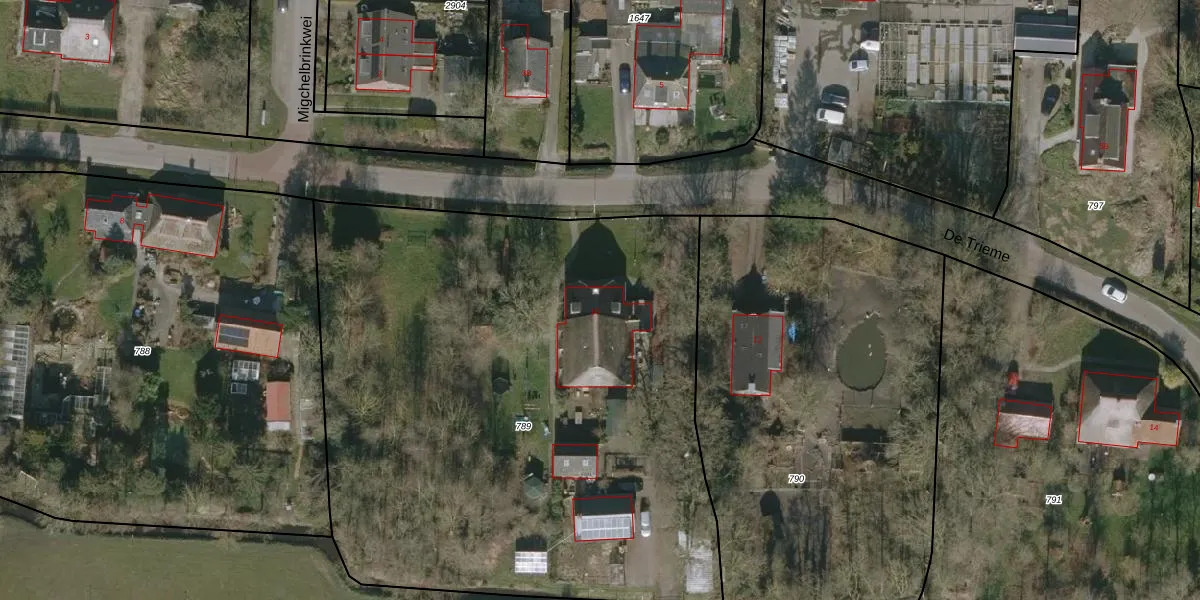 De Trieme 10 is gelegen op kadastraal perceel WTG01F789. Deze kadastrale aanduiding is uniek en wordt gebruikt door het Kadaster om eigendomsrechten en andere zakelijke rechten vast te leggen. Het perceel maakt onderdeel uit van de kadastrale gemeente Westergeest.