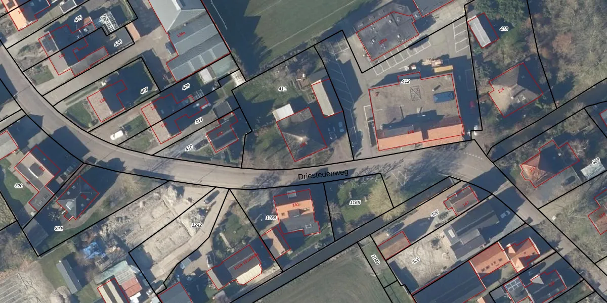 Gebruik de zoekbalk of klik op een perceel voor informatie over de adressen binnen dit perceel.