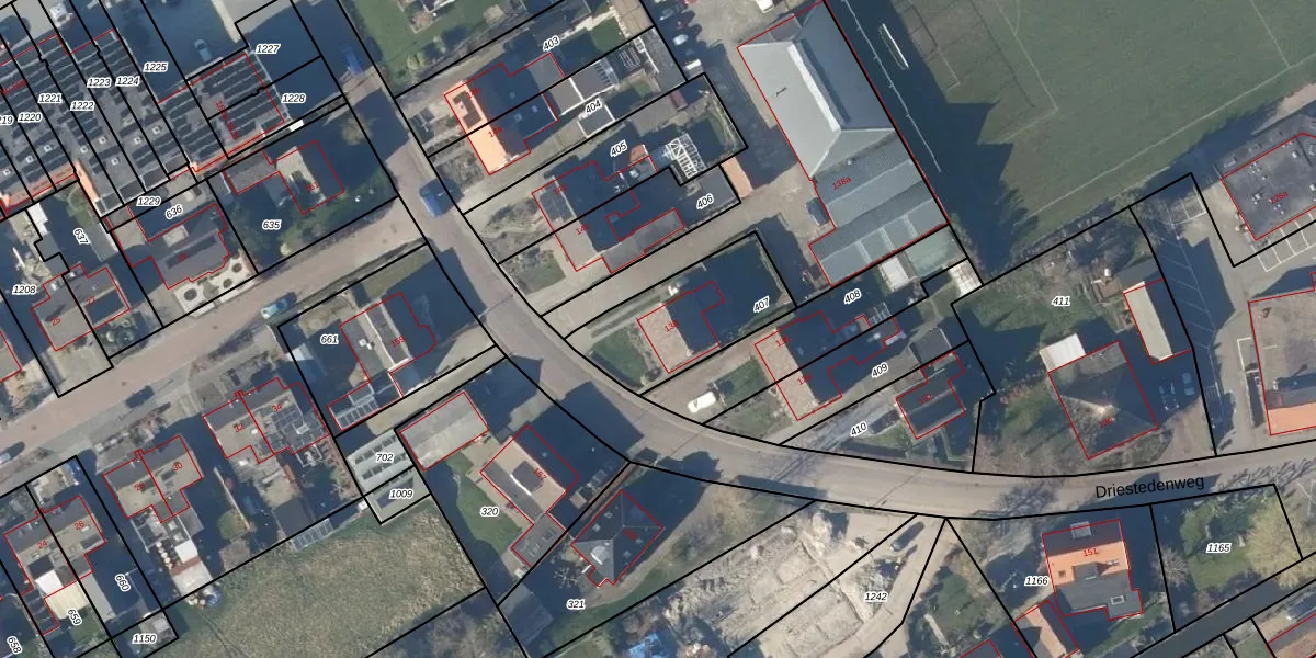 Gebruik de zoekbalk of klik op een perceel voor informatie over de adressen binnen dit perceel.