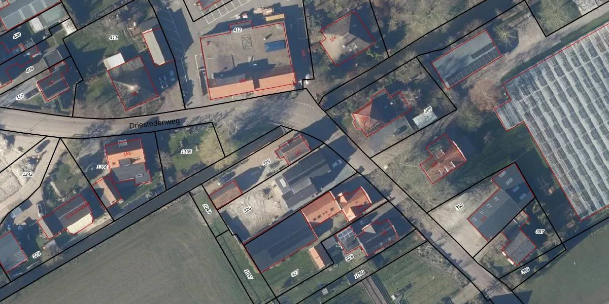 Driestedenweg 147 is gelegen op kadastraal perceel OMR01W325. Deze kadastrale aanduiding is uniek en wordt gebruikt door het Kadaster om eigendomsrechten en andere zakelijke rechten vast te leggen. Het perceel maakt onderdeel uit van de kadastrale gemeente Opmeer.