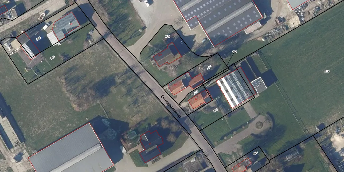 Driestedenweg 50 is gelegen op kadastraal perceel OMR01W210. Deze kadastrale aanduiding is uniek en wordt gebruikt door het Kadaster om eigendomsrechten en andere zakelijke rechten vast te leggen. Het perceel maakt onderdeel uit van de kadastrale gemeente Opmeer.