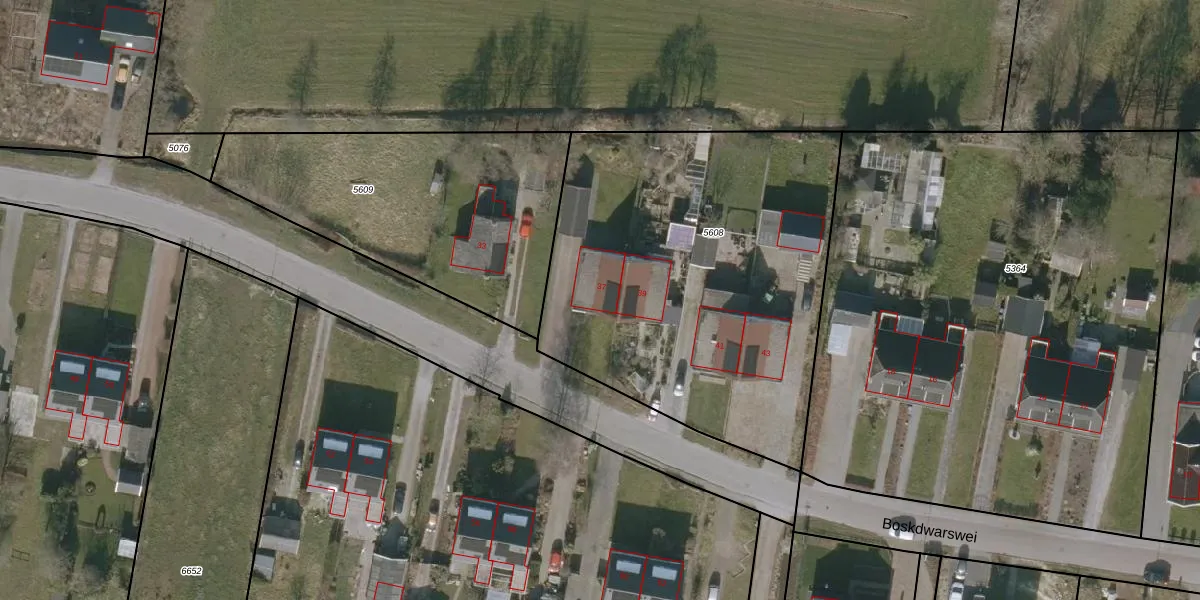 Boskwei 37 is gelegen op kadastraal perceel VWD01G5608. Deze kadastrale aanduiding is uniek en wordt gebruikt door het Kadaster om eigendomsrechten en andere zakelijke rechten vast te leggen. Het perceel maakt onderdeel uit van de kadastrale gemeente Veenwouden.