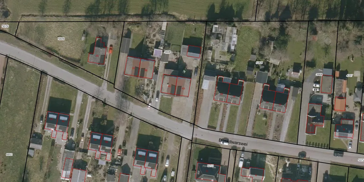 Boskwei 43 is gelegen op kadastraal perceel VWD01G5608. Deze kadastrale aanduiding is uniek en wordt gebruikt door het Kadaster om eigendomsrechten en andere zakelijke rechten vast te leggen. Het perceel maakt onderdeel uit van de kadastrale gemeente Veenwouden.