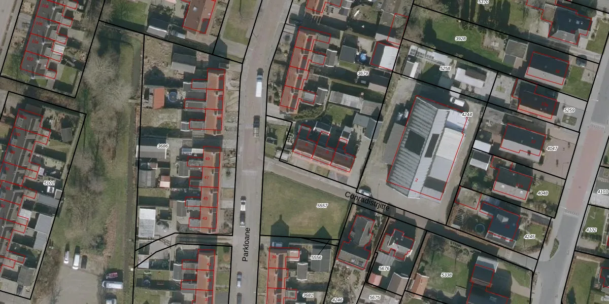 Het perceel waarop Conradistrjitte 8 staat heeft een oppervlakte van 2925 m². Dit is een zeer groot perceel. De perceeloppervlakte wordt geregistreerd door het Kadaster. Gedetailleerde informatie over de maten van dit perceel kunt u vinden in het rapport Kadastrale kaart met maatvoering van Conradistrjitte 8.