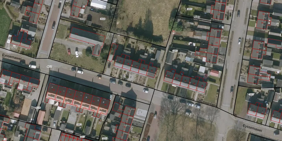 Eyssemawei 39 is gelegen op kadastraal perceel VWD01G3960. Deze kadastrale aanduiding is uniek en wordt gebruikt door het Kadaster om eigendomsrechten en andere zakelijke rechten vast te leggen. Het perceel maakt onderdeel uit van de kadastrale gemeente Veenwouden.