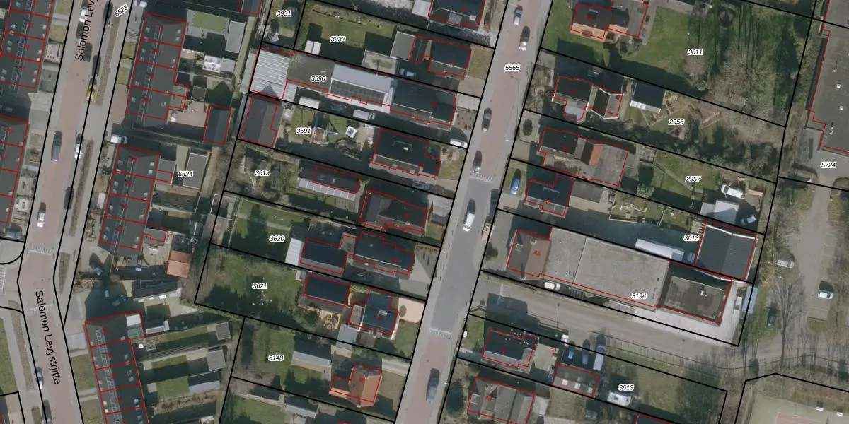 Gebruik de zoekbalk of klik op een perceel voor informatie over de adressen binnen dit perceel.