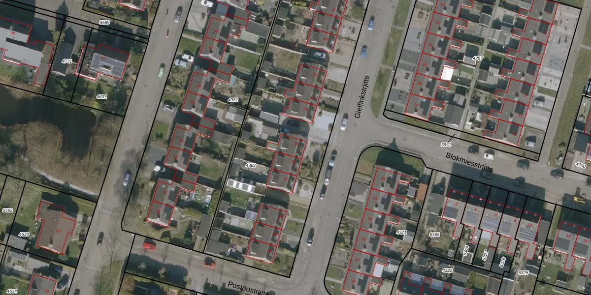 Gielfinkstrjitte 18 is gelegen op kadastraal perceel VWD01G4382. Deze kadastrale aanduiding is uniek en wordt gebruikt door het Kadaster om eigendomsrechten en andere zakelijke rechten vast te leggen. Het perceel maakt onderdeel uit van de kadastrale gemeente Veenwouden.
