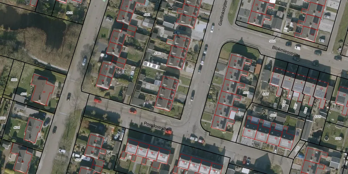 Het perceel waarop Gielfinkstrjitte 24 staat heeft een oppervlakte van 2948 m². Dit is een zeer groot perceel. De perceeloppervlakte wordt geregistreerd door het Kadaster. Gedetailleerde informatie over de maten van dit perceel kunt u vinden in het rapport Kadastrale kaart met maatvoering van Gielfinkstrjitte 24.