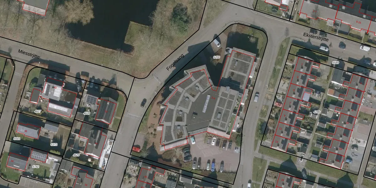 Het perceel waarop Gielfinkstrjitte 4-19 staat heeft een oppervlakte van 3570 m². Dit is een zeer groot perceel. De perceeloppervlakte wordt geregistreerd door het Kadaster. Gedetailleerde informatie over de maten van dit perceel kunt u vinden in het rapport Kadastrale kaart met maatvoering van Gielfinkstrjitte 4-19.